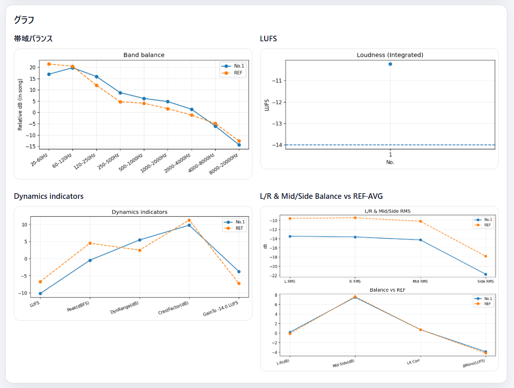 周波数分布・ダイナミクスをリファレンスと比較分析します。