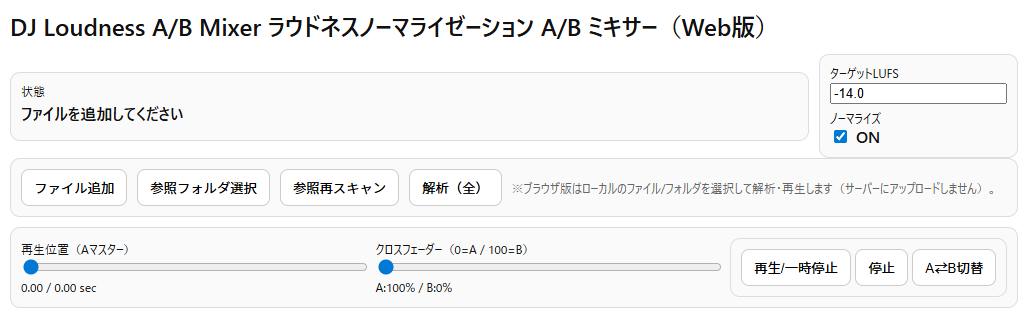 ラウドネスノーマライゼーション A/B ミキサー
