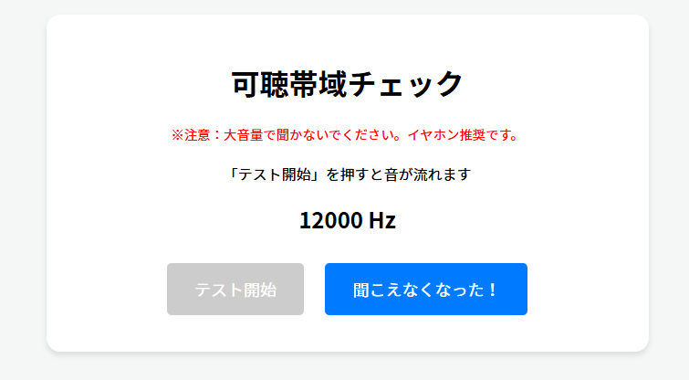 どの周波数まで聞こえているかのテストです。
